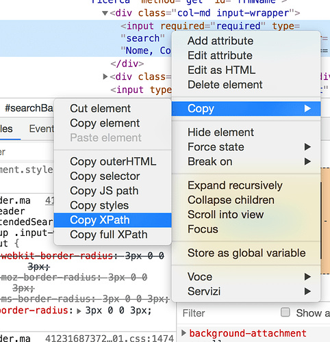 Now we apply the same mechanism used for cookies to select the search bar. We right click on the search bar in order to extract the xpath and we select the inspect option: